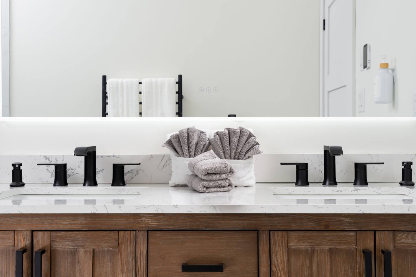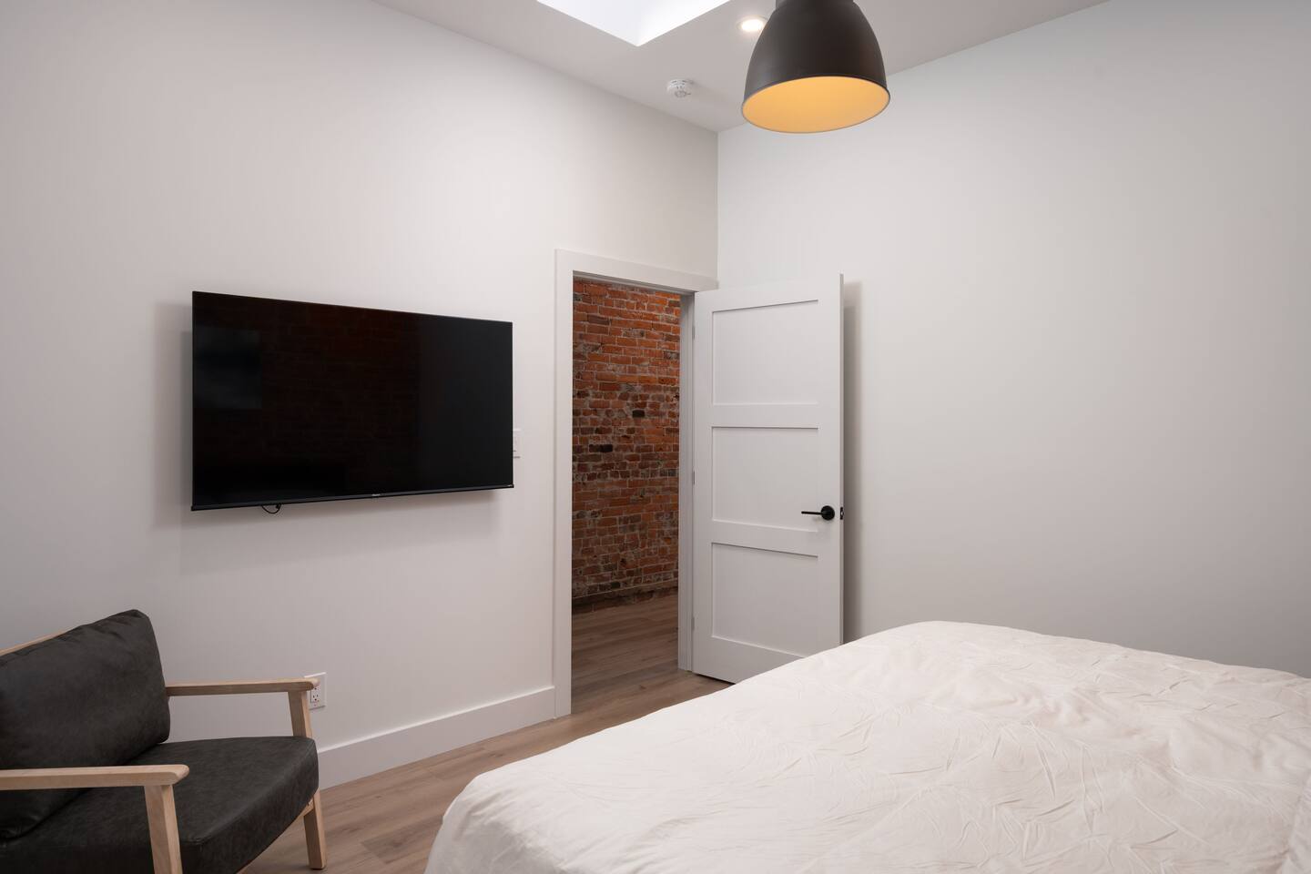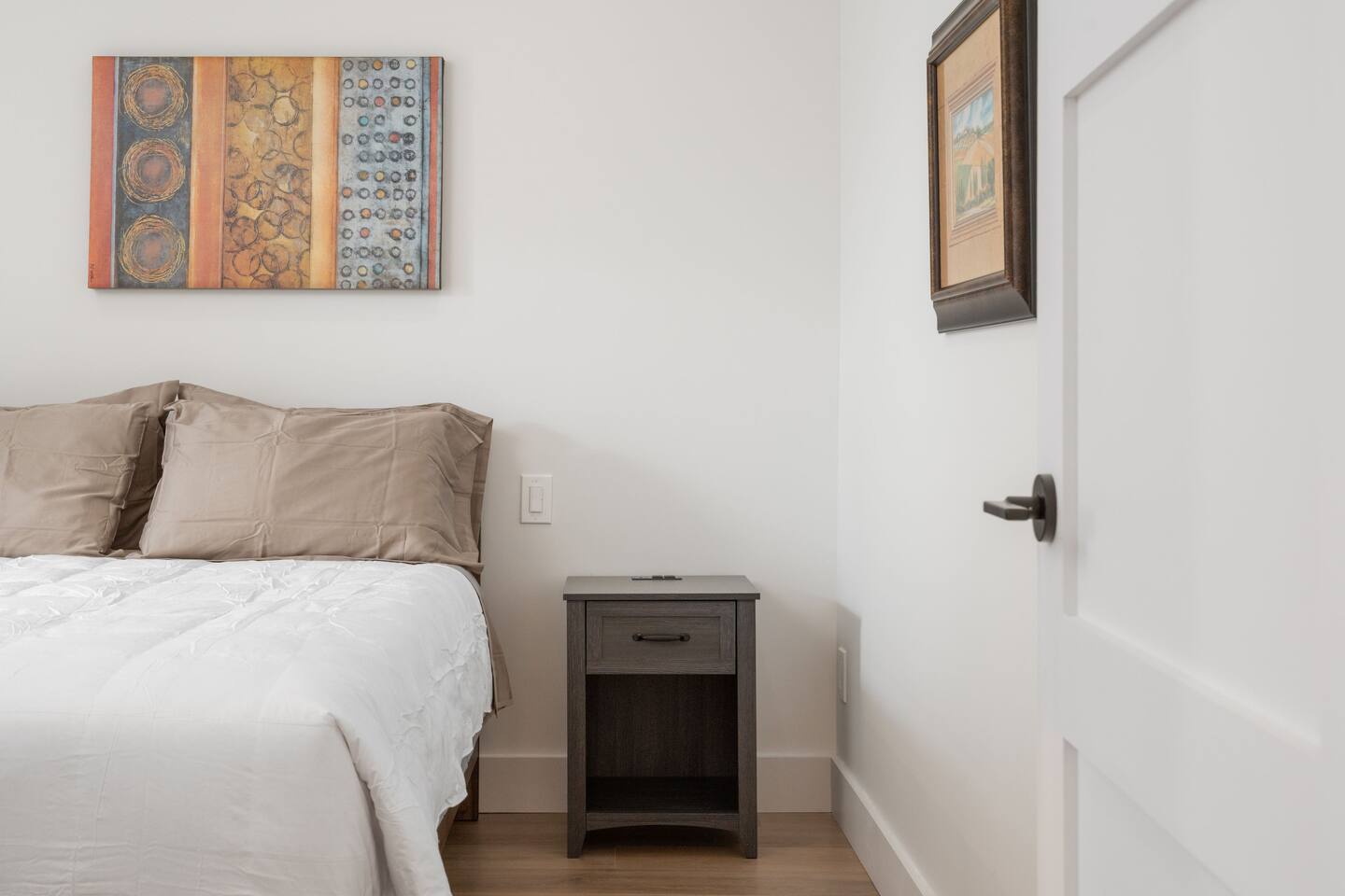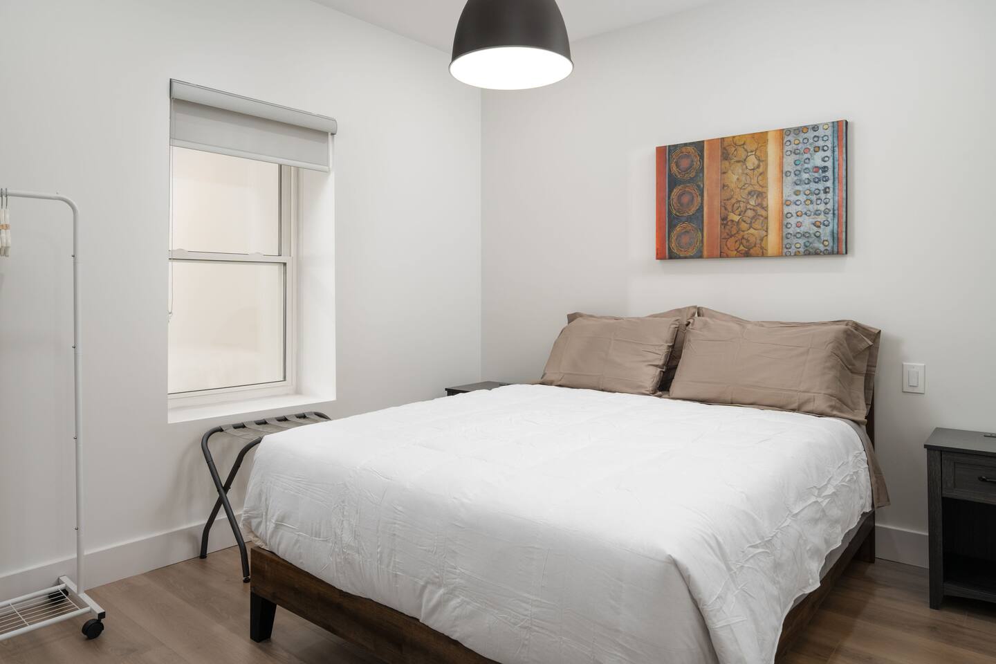Welcome to a beautifully curated residence where modern luxury meets timeless elegance. The open-concept living area is designed for both comfort and style, featuring a sofa bed and accent chairs, and a 60-inch TV. Perfect for intimate gatherings or relaxing evenings. The gourmet kitchen is fully equipped with an induction range, cookware, and all the essentials, allowing you to prepare meals with ease and sophistication. There is also a Nespresso machine with a few pods to get you started. Each of the two bedrooms offers a serene retreat. One bedroom has a King Bed, and the second has a Queen Bed. All linens and duvets are provided. There is an ironing board/iron and luggage racks. TVs are located in both bedrooms. The bathroom suite elevates the experience with a private ensuite boasting a double vanity, bidet, heated toilet seat, heated floors, towel warmer and a rainfall shower head. A hair dryer is located in the vanity as well. For added convenience, a dedicated parking space is located at the entrance of the unit.